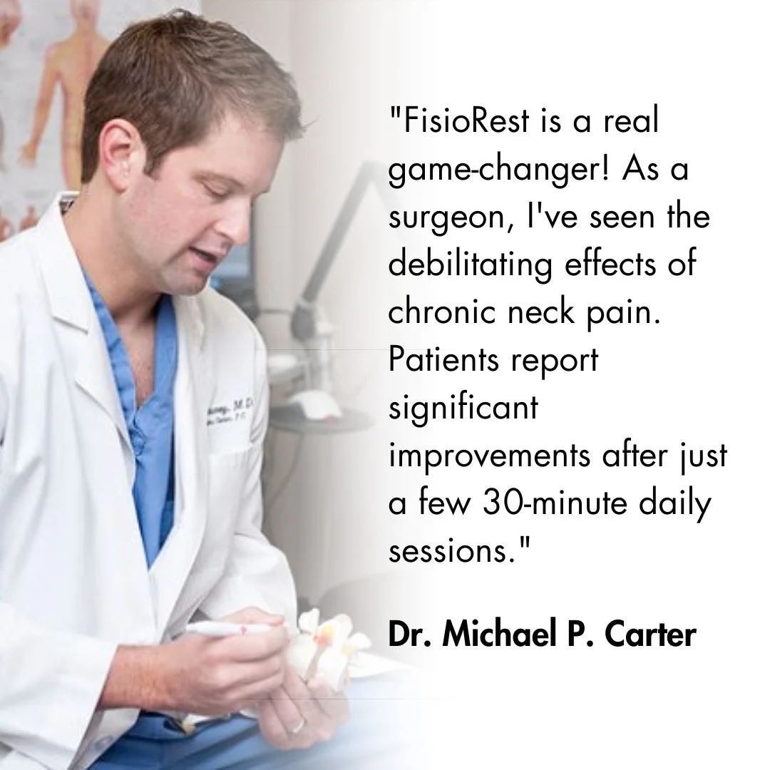 FisioRest is designed for those dealing with these issues daily. Our device is engineered to relieve neck pain and prevent worsening complications in just 15-30 minutes a day, improving your long-term health.