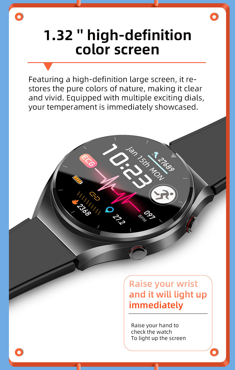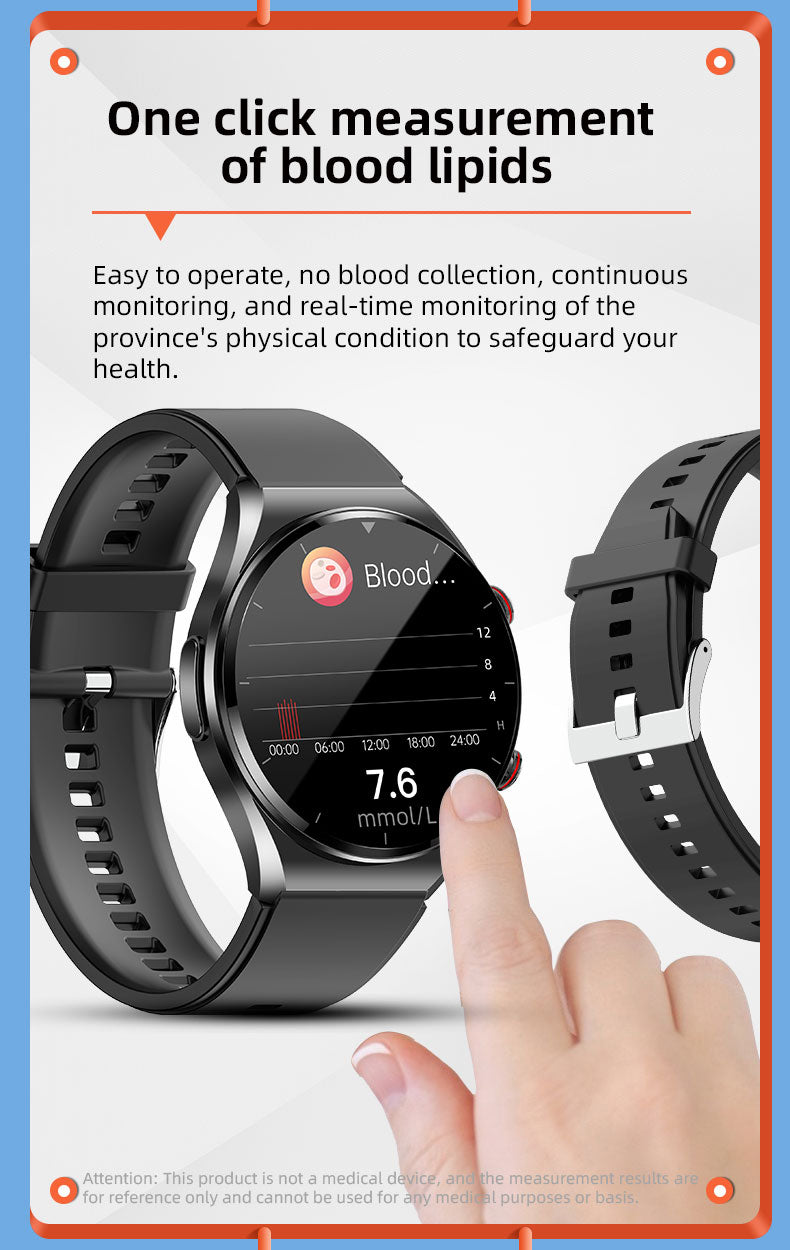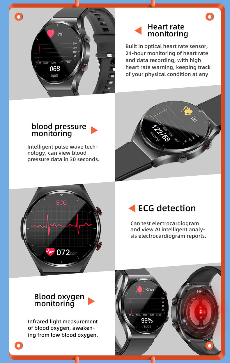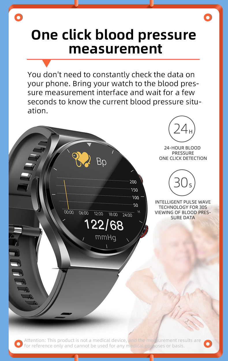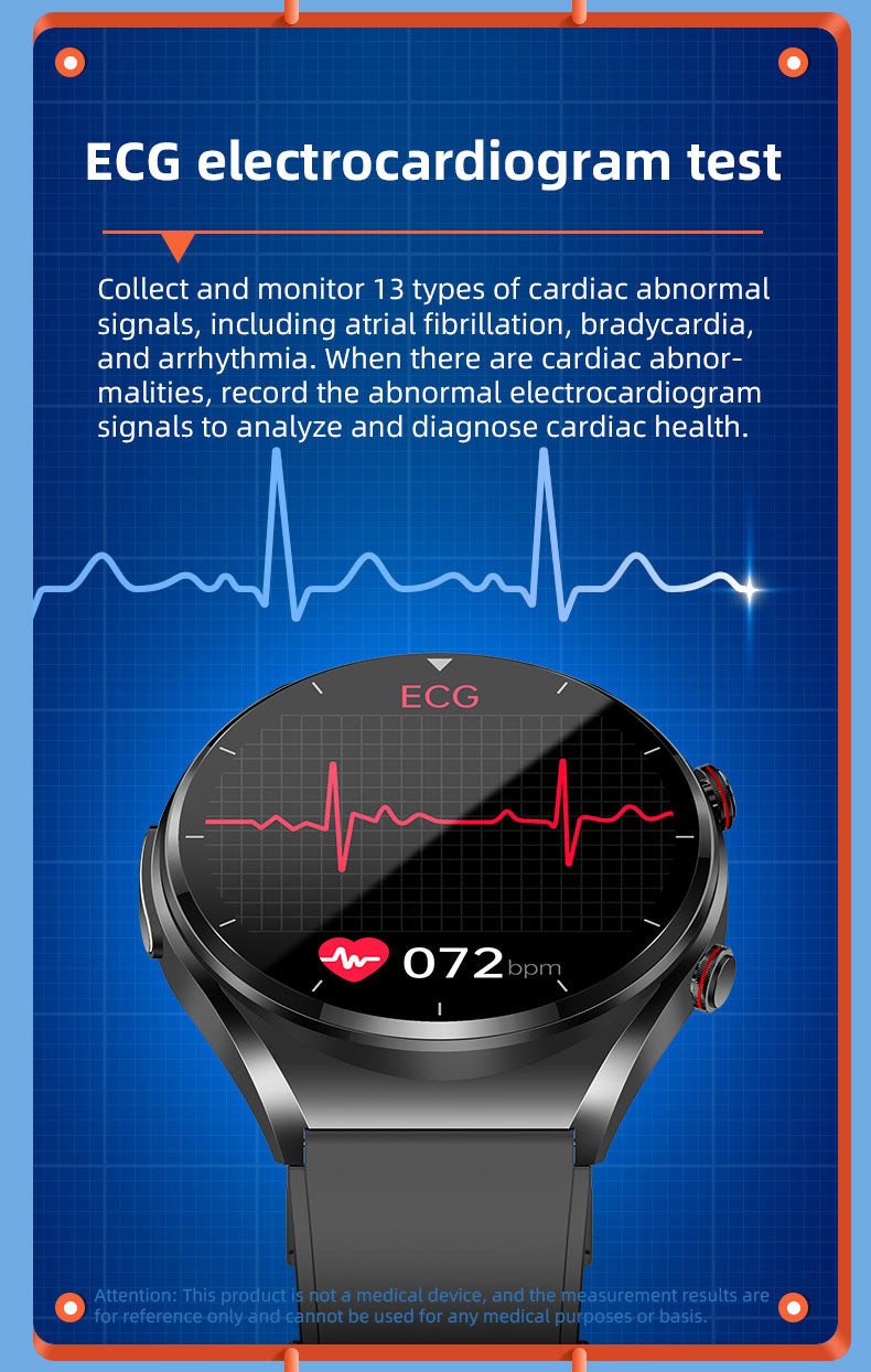 One-click Blood Pressure Blood Sugar ECG/EKG HRV Heart Rate Monitor Health Smart Watch