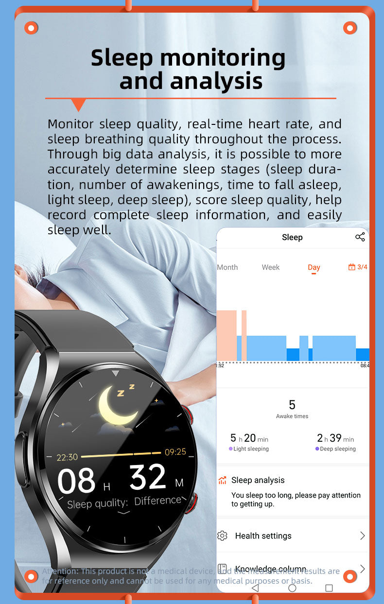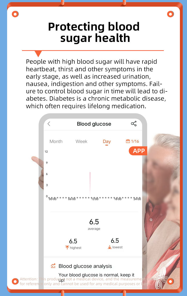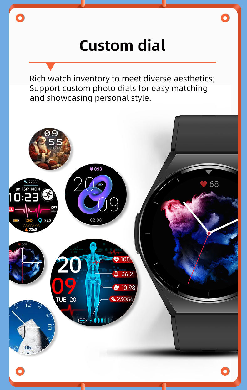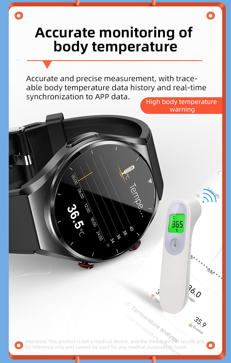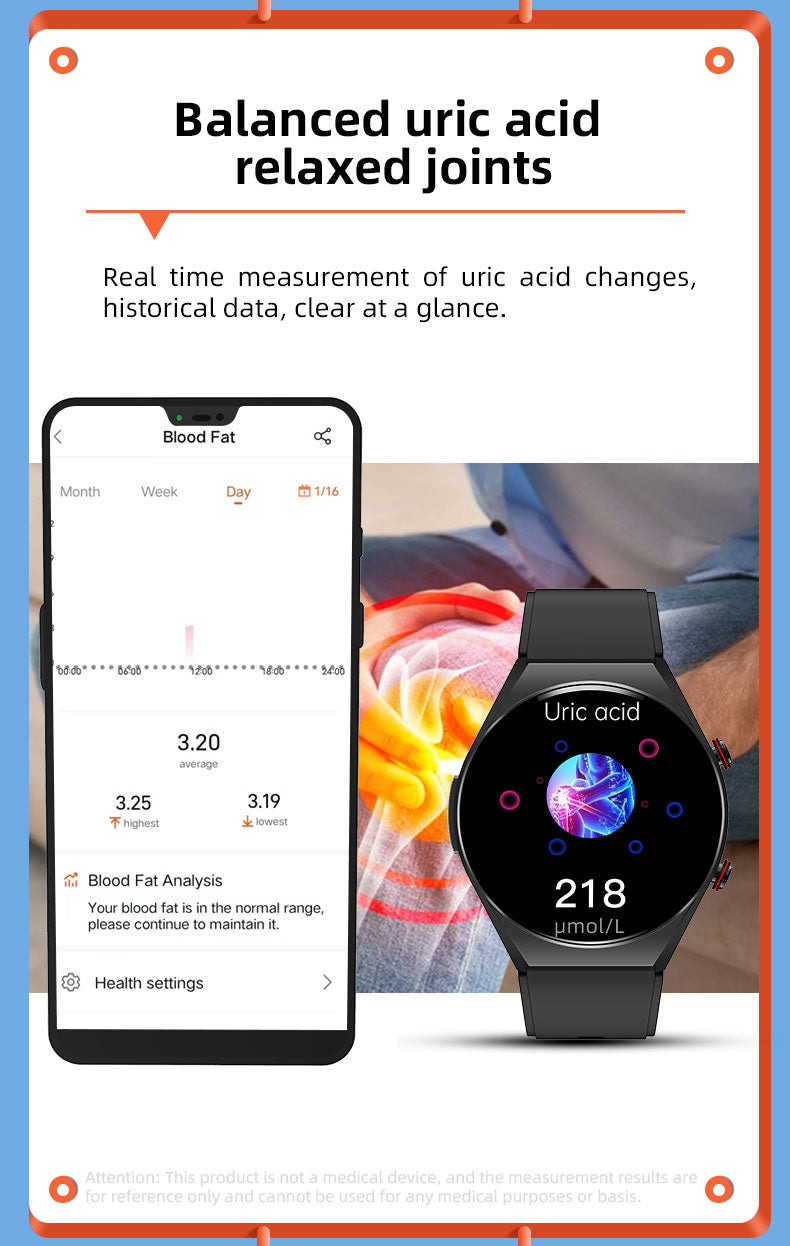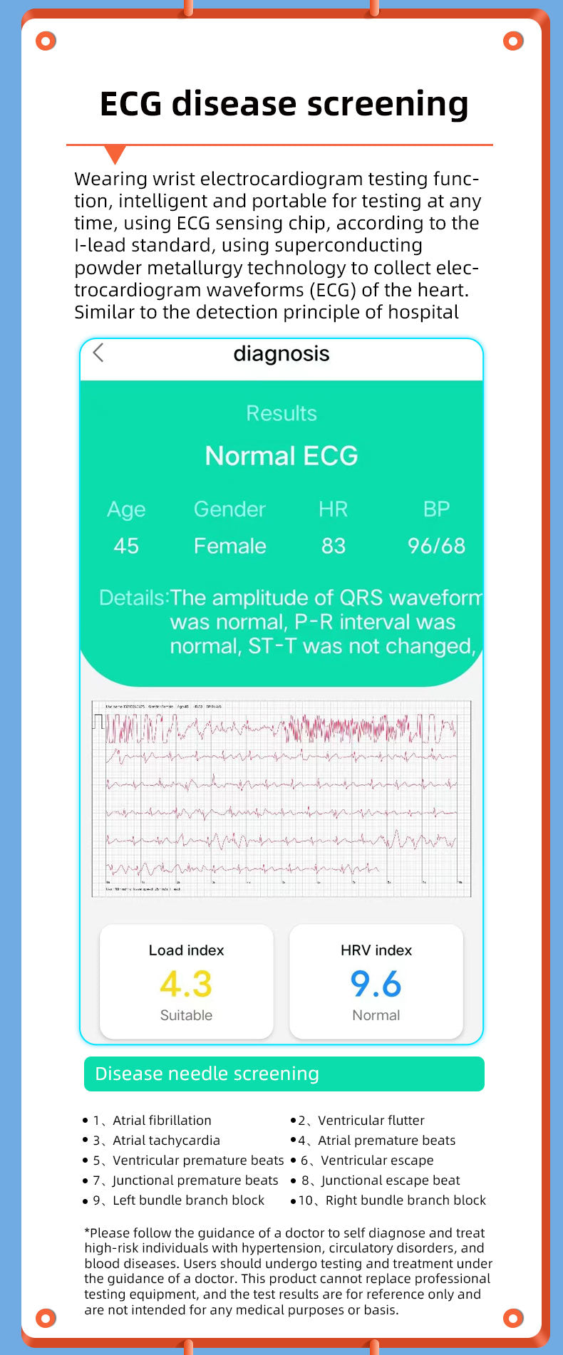 One-click Blood Pressure Blood Sugar ECG/EKG HRV Heart Rate Monitor Health Smart Watch