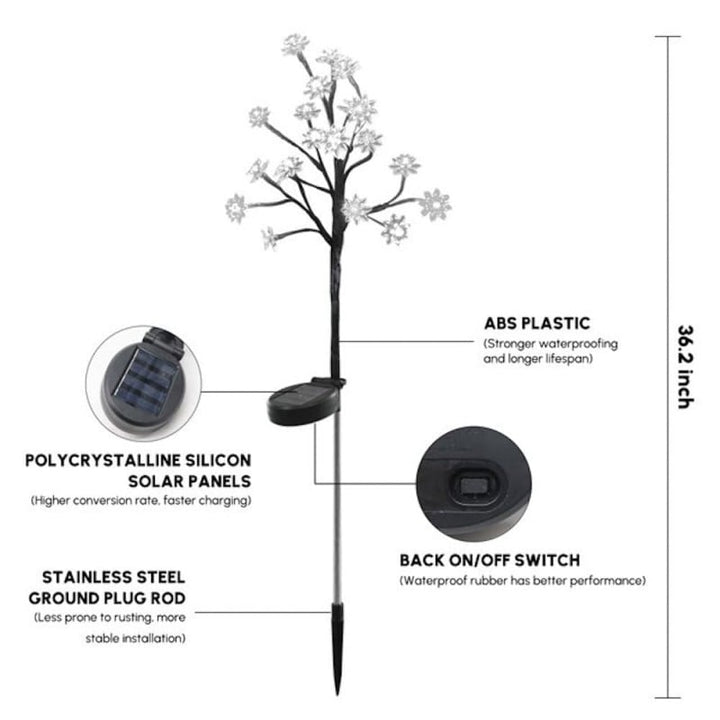 Our solar-powered flower lights with 20 LED cherry blossoms have higher brightness and more vivid colors. The upgraded wider solar panel converts sunlight into power faster and more efficiently to maximize lighting time. Great for creating a romantic atmosphere in your garden.