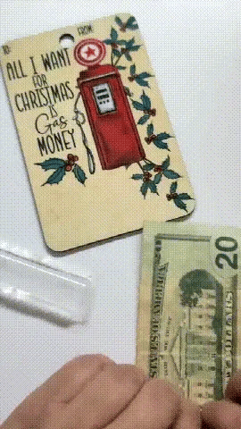 Easy to make: roll up the money and put it in a small plastic box, then remove the tape and stick it on the wooden card.