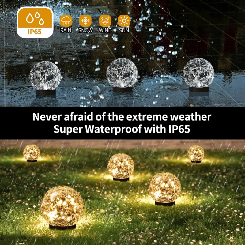 Enhance the charm of your yard, garden, or patio with these elegant solar-powered glass globe lights. Featuring a warm LED string inside a beautifully crackled glass ball, they create a dazzling sparkle that brings warmth and magic to any outdoor evening setting.