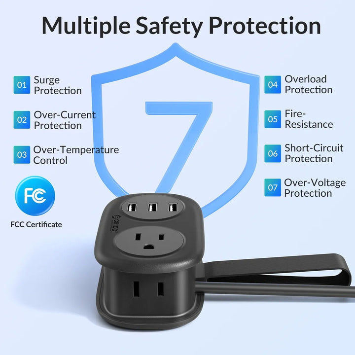 7 in 1 Power Strip, ORICO 4 Outlets 3 USB Ports